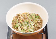 4. 어느 정도 볶아지면 우유를 넣고 다시 한 번 볶아준다.