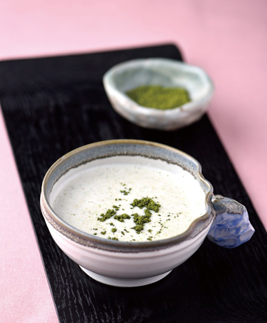 6. 마지막으로 생크림을 넣고 농도를 조절하고 녹차가루를 올려 완성한다.