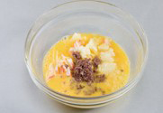 4. 계란을 풀고 소고기 다진 것과 게맛살, 물을 넣고 섞은 뒤 찜기에 쪄준다.