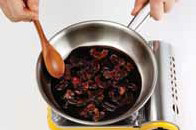 9. 끓인 소스에 소시지를 넣고 졸인 다.c