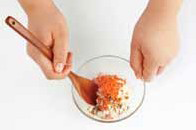 2. 두부는 으깨어 면보로 싸서 물기 를 빼준다.
