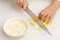 2. 배추는 3×3cm로 썰어 소금에 절인 후 체에 받친다.b
