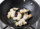 3. 두부, 가지는 물기를 제거한 뒤 후춧가루로 밑간하고 녹말가루를 얇게 입혀 식용유를 두른 팬에서 구워 건진다.