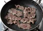 5. 팬에 차돌박이를 펼친 뒤 오렌지소스를 조금씩 넣으며 익힌다.