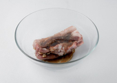 1. 통삼겹살은 속을 판 뒤 땅콩, 아몬드, 말린 자두, 호두로 채운 뒤 돼지고기 밑간에 재워 놓는다.
