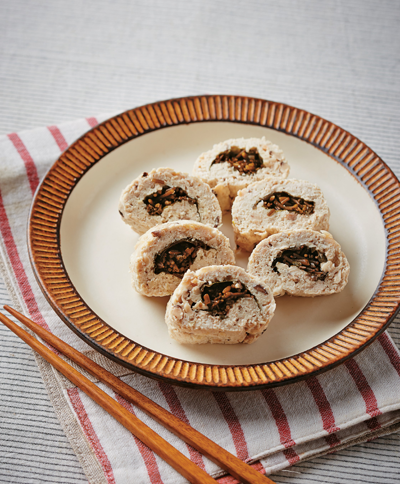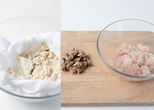 1. 두부는 으깨어 면포에 물기를 짜고, 불린 표고버섯도 물기를 꼭 짠 뒤 다지고, 닭가슴살은 곱게 다진다.