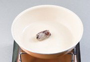 4. 만들어진 체리 만두를 팬에 살짝 구워서 라이스페이퍼를 고소하게 만든다.