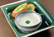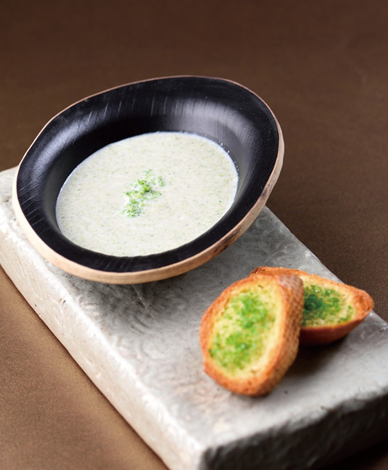 6. 그릇에 브로콜리스프를 담아주고 청양고추 버터 바게트를 곁들여 완성한다.
