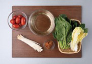 방울토마토 100g, 일식 된장 25g, 닭육수 250g, 시금치 30g, 알배추 25g