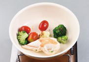 3. 콜리플라워, 브로콜리는 뜨거운 물에 데친 후 방울토마토와 함께 팬에 구워준다.
