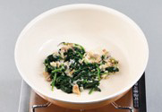 2. 시금치는 데친 후 수분을 제거해 먹기 좋게 잘라주고, 양파는 송송 다져준다. 준비된 채소를 마늘과 버터에 볶아주다 생크림을 넣어 살짝 졸여준다.