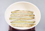1. 가지는 길이로 포를 떠 준다. 이때 필러를 이용하면 간편하게 할 수가 있다.