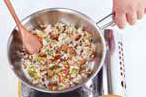 3. 달궈진 프라이팬에 피망, 호박, 양파, 부추, 마늘을 볶다가, (1)의 잡곡밥을 넣고 볶는다.a