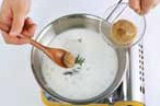5. 달궈진 프라이팬에 식용유를 두르고 마늘을 넣어 향을 내고, 생크림과 물엿, 다진 로즈마리와 만들어 놓은 된장소스(4)를 넣고 잘 섞어 된장크림 소스를 만든다.c