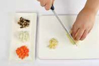 1. 깨끗이 씻어 손질한 고구마, 표고 버섯, 양파, 당근을 사방 0.5cm 정도의 크기로 썬다.a