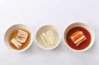 3. 삼색 촛물에 담가 부드러워진 더덕을 건져 물기를 제거한다.