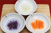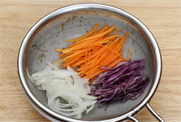 2. 적양배추와 당근, 양파를 채를 썰어 찬물에 담그어 놓는다.