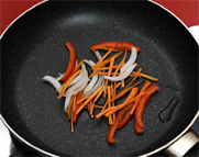 2. 양파와 청 피망, 홍고추는 약 5cm 길이로 채를 썰고, 홍고추 몇 개는 어슷썰어 놓는다.