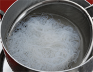 1. 뜨거운 물에 실곤약을 넣고, 약 20초 정도 삶아 건진다.