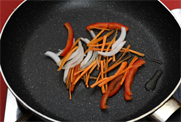 4. 팬에 기름을 살짝 둘러 준비한 채소(③)에 소금을 넣고 볶아 놓는다.