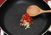 6. 토마토는 입자있게 다져 다진 마늘과 함께 볶다가 케첩과 육수를 넣고 끓인 뒤 말아놓은 닭고기를 넣고 은근히 졸이듯 익혀 완성한다.