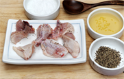 2. 닭은 작게 토막을 내어 생강과 정종, 소금, 후춧가루를 뿌려 숙성시킨다.