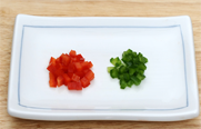 3. 파프리카와 피망은 속을 파내고 작은 깍두기 모양으로 썰고, 깻잎은 잘게 썰어둔다.