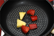 3. 팬에 기름 없이 파인애플과 파프리카를 먼저 굽는다.