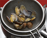 2. 삶아진 바지락을 채에 밭쳐 바지락 국물을 만들어 놓는다.