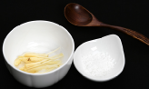 2. 껍질을 벗긴 도라지는 잘라 소금에 살짝 절여 쓴맛을 뺀다.