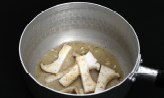 6. 냄비에 들깨가루와 사골육수를 넣고 끓인 뒤 데친 곤약을 넣은 뒤 한소끔 더 끓인다.