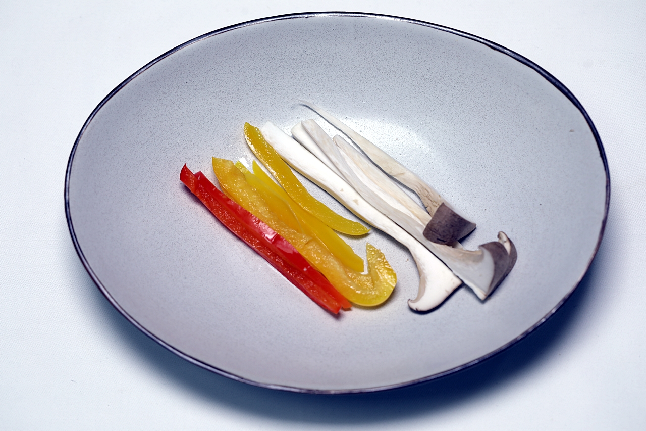 1. 새송이버섯과 파프리카는 가늘게 채썬다.