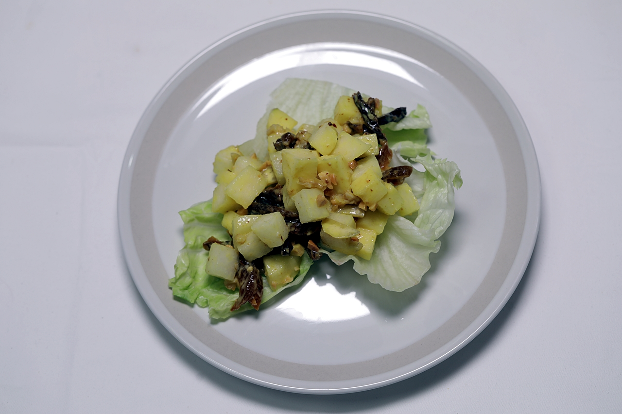사과 25g, 배 50g, 밤 10g, 대추 6g, 곶감 10g, 호두 5g, 땅콩 5g, 양상추 15g, 연겨자 1.25g, 연유 2.5g, 사과식초 2.5g, 꿀 3.5g, 배즙 2.5g