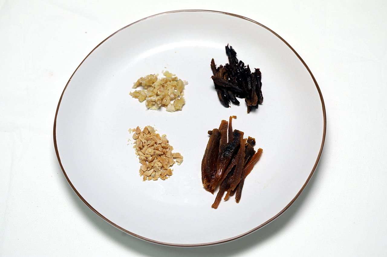 3. 대추, 곶감은 굵게 채 썰고 호두, 땅콩은 굵게 다진다.