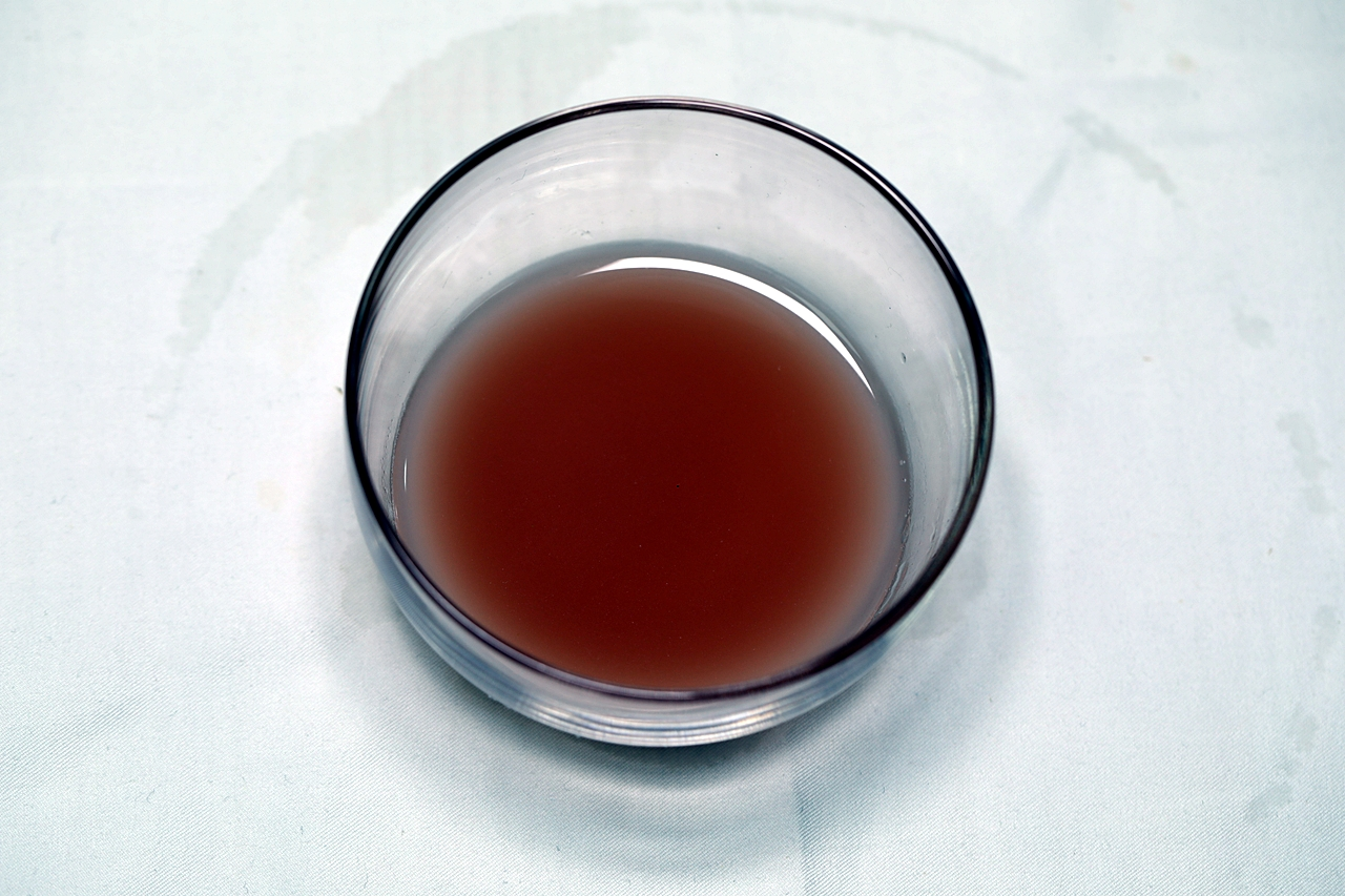 5. 찹쌀풀에 배와 적양파를 갈아 넣어 국물을 만든다.