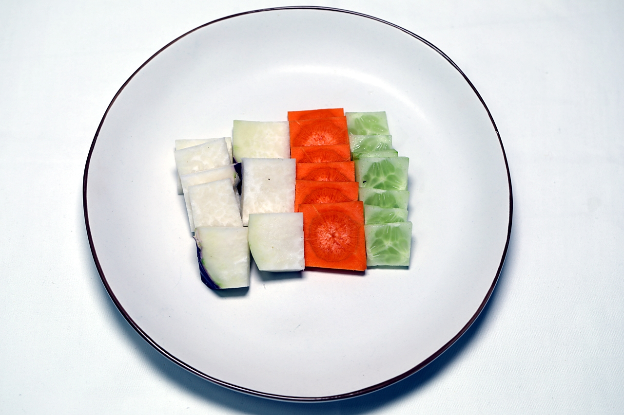 1. 콜라비, 당근, 오이는 나박 썬다.
