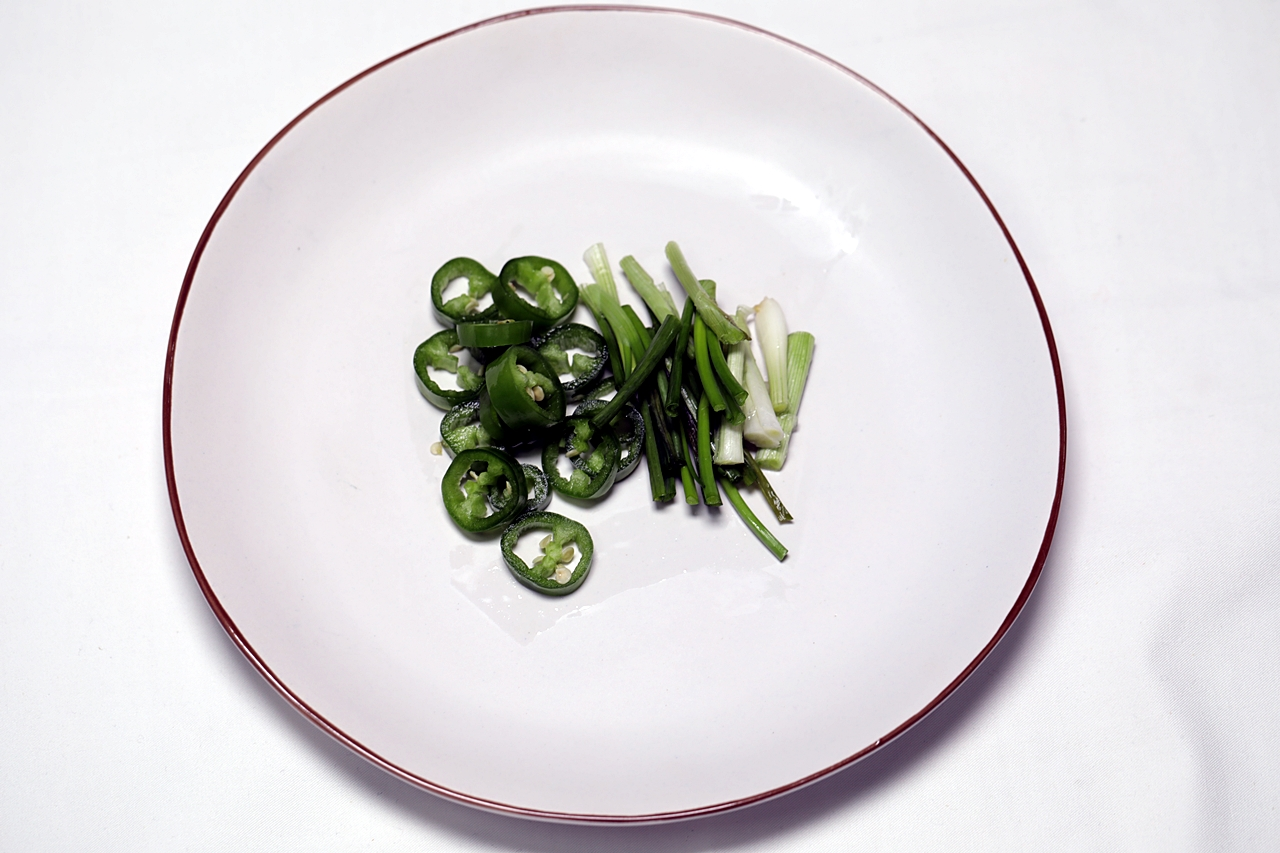 2. 고추는 둥글게 썰고 실파는 3cm 길이로 썬다.