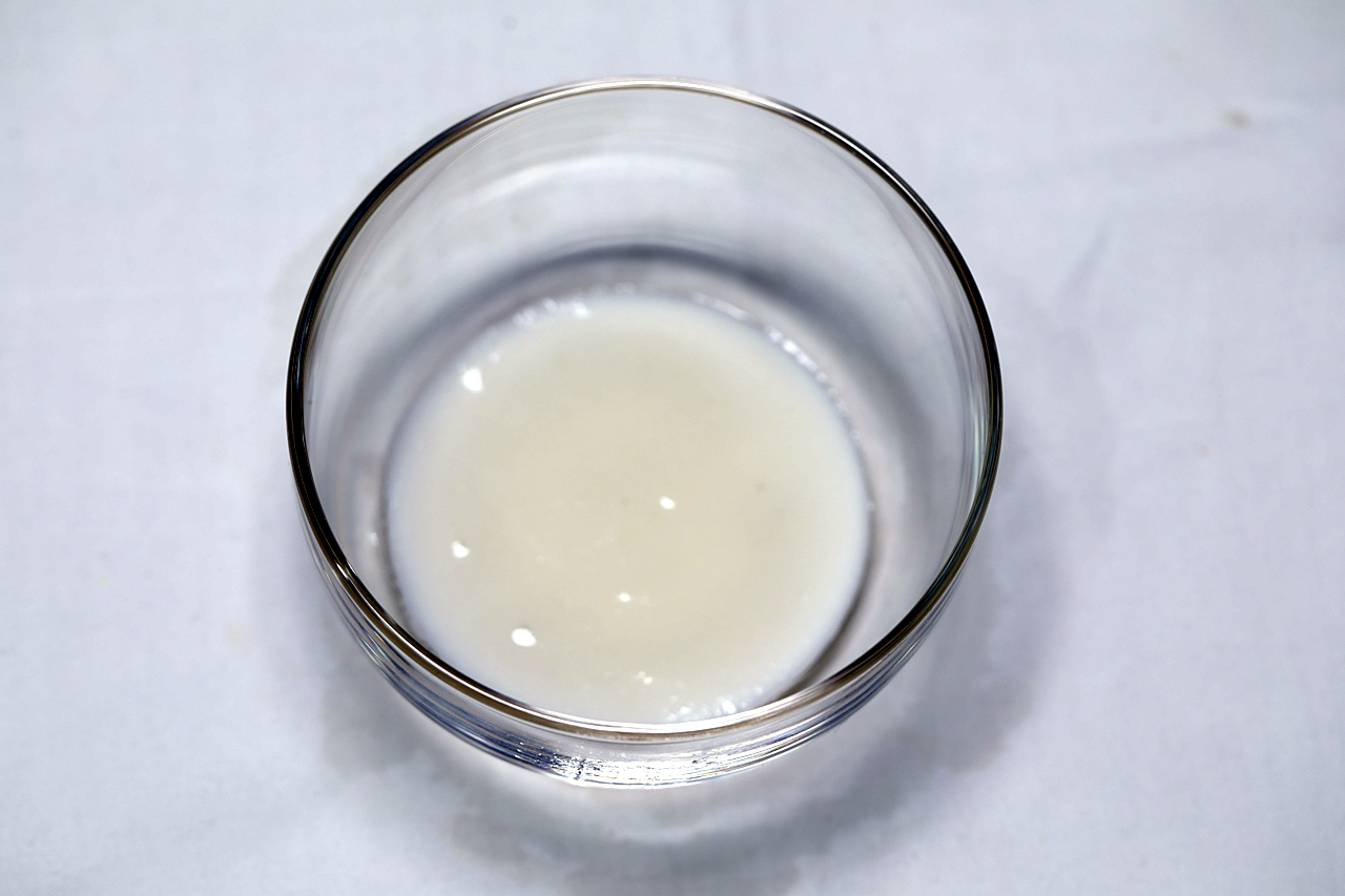 4. 물에 찹쌀을 풀어 찹쌀풀을 쑤어 식힌다.