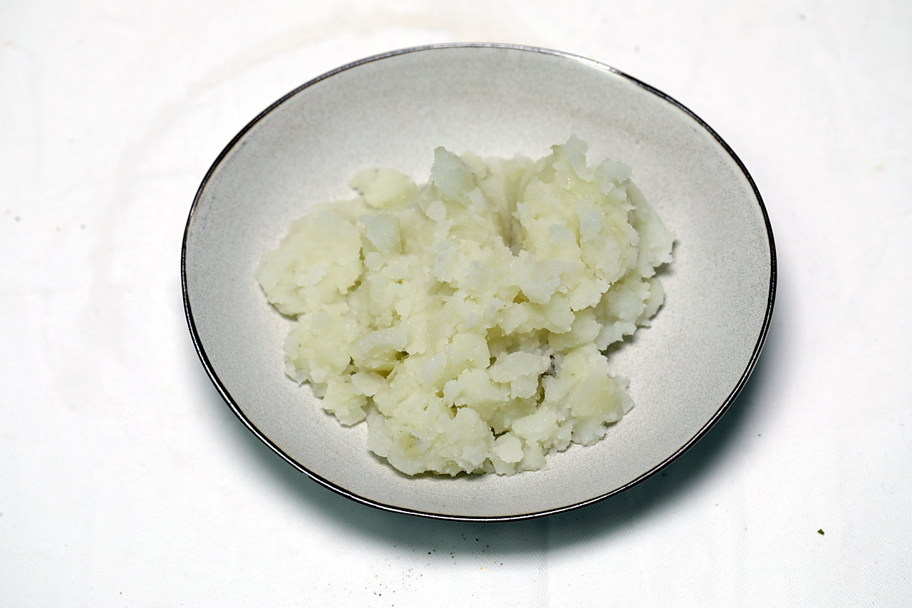 2. 감자는 껍질을 벗겨 찜통에 찐 후 으깬다.