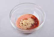 양념 : 바나나 40g, 배 40g, 고춧가루 15g, 매실청 10g, 간편 어간장 15g