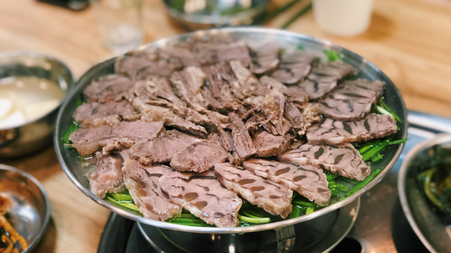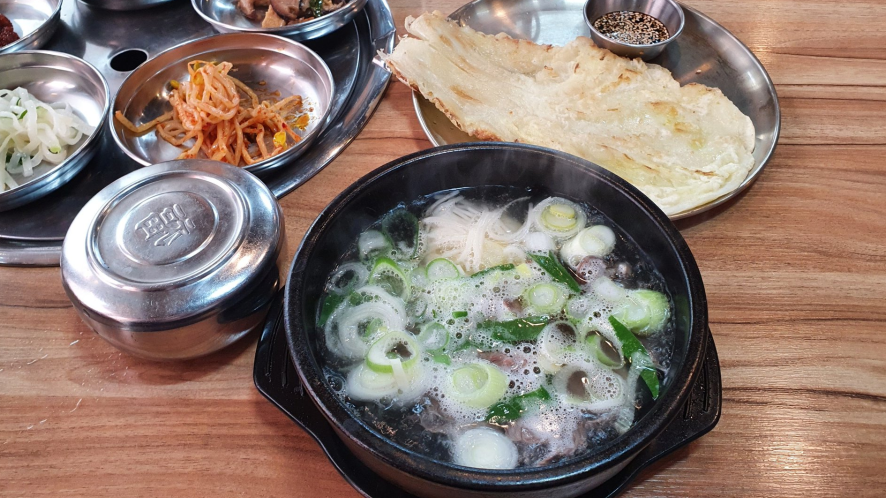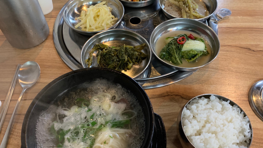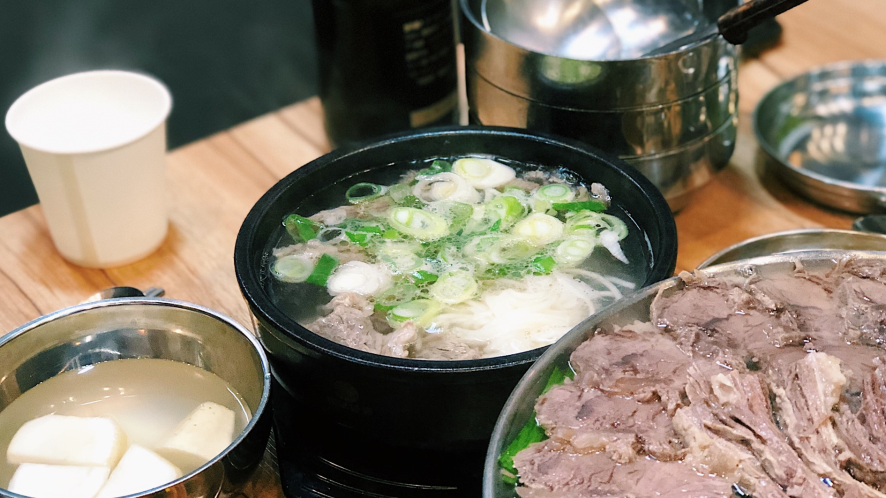 식사 메뉴로는 맑은 국물 9000원과 야채전 3000원이 있으며, 한우 맑은국밥은 뜨끈한 뚝배기에 담겨져 나오는데 국물이 탁하지 않고 깔끔하며, 고기도 큼직하고 부드럽다. 또한 파김치, 총각김치, 양송이버섯 등 반찬도 맛있어서 전반적으로 맛있는 식사를 즐길 수 있다.