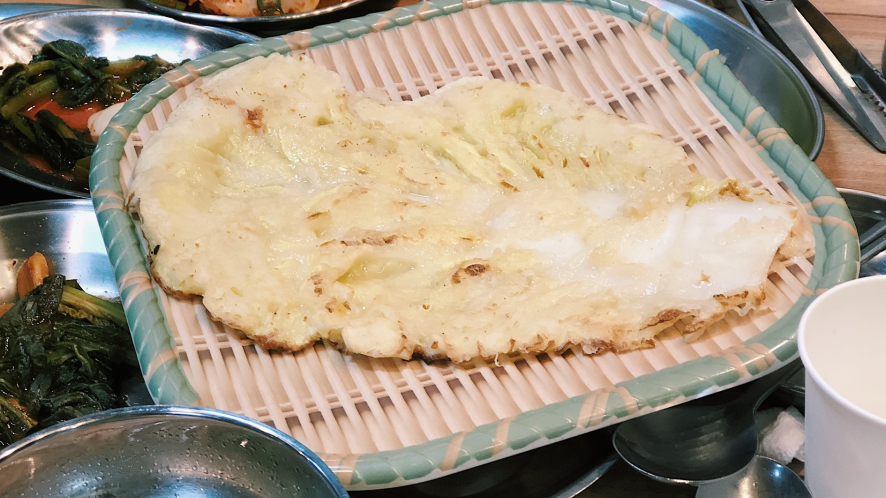 모든 메뉴에서 맛을 추구하는 노력이 느껴진다. 또한 메뉴가 계절에 따라 변화하며, 여름에는 김치전, 겨울에는 배추전을 제공한다. 지금은 6월 초라 야채전이라고 하니, 애호박이랑 당근 등이 들어간 전인데 가장자리는 바삭하고 안은 부드럽다.