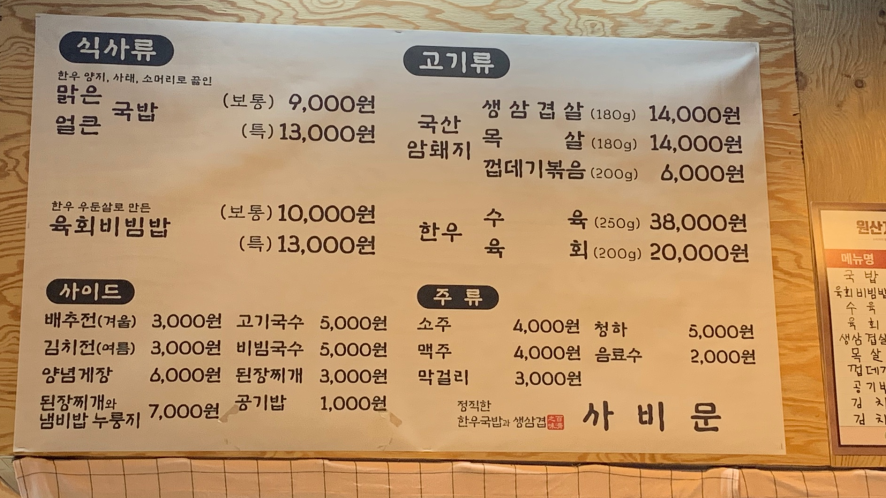 오늘은 한국 전통음식 중 하나인 백제의 맛을 느낄 수 있는 곳을 소개하려고 한다. 서울시 영등포구에 위치한 '사비문'은 충남 부여 출신 사장님의 고향의 지역색을 담아 지은 상호명으로, 부모님께서 제공해주시는 한우 등 지역 식재료를 사용하여 백제의 맛을 재현하고 있다.