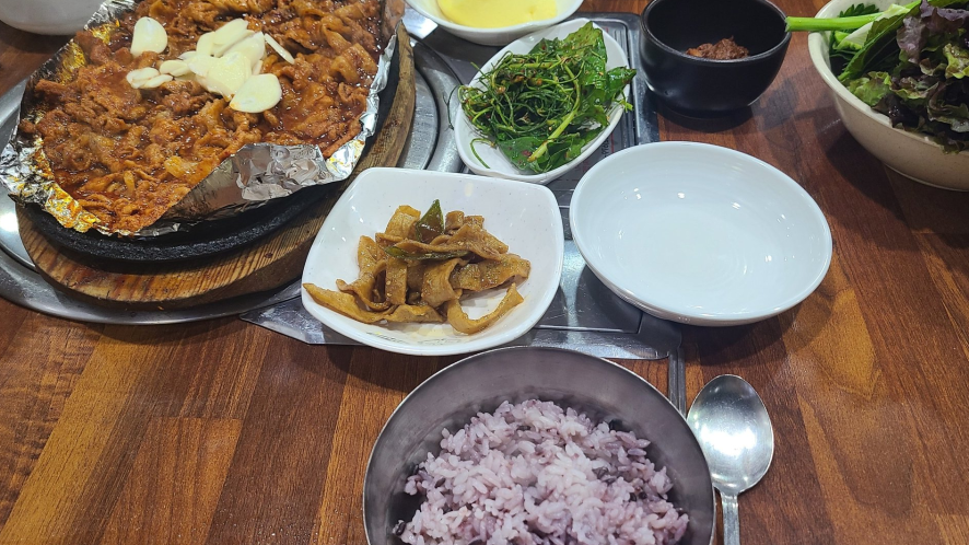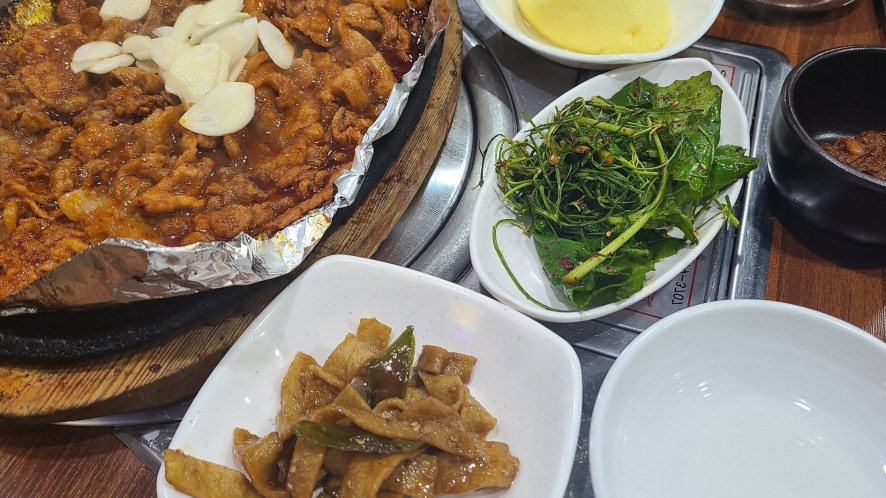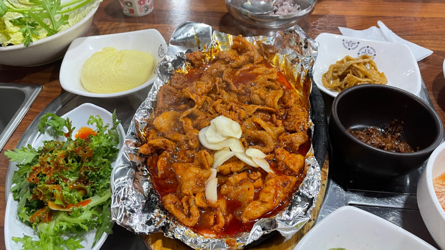 제육은 볶아져서 나오기 때문에 손님들은 편하게 즐길 수 있다. 기본적으로 달고 매운 양념이지만, 최근 유행하는 맵거나 짜지 않은 스타일이 아닌 적당한 간으로 조절되어 있어 더욱 건강하고 맛있다.