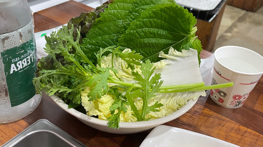 쌈채소는 배추, 깻잎, 상추, 당귀 등 다양한 종류로 제공되며 상태도 싱싱하다. 구수한 된장찌개도 넉넉하게 제공되며, 쌈된장용 강된장도 맛있다. 또한, 김치나 겉절이도 맛있어서 밥이랑 찌개랑 같이 먹으면 맛이 더해진다.