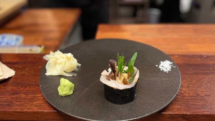 그리고 가격은 조금 올랐지만, 여전히 맛과 품질은 변함없이 최상입니다. '논데'의 디너오마카세(₩58000/잔술2잔 필수)는 절대 놓치지 말아야 할 추천 메뉴입니다. 참치, 잿방어, 이소베마끼, 전복과 게우소스, 가리비, 가지조림, 아이스크림 등 다양한 안주들과 함께 나오는 오마카세는 술을 좋아하시는 분들께는 딱이겠죠. 술과 함께 넉넉한 양으로 제공되는 안주는 언제나 만족스러운 맛을 선사합니다.