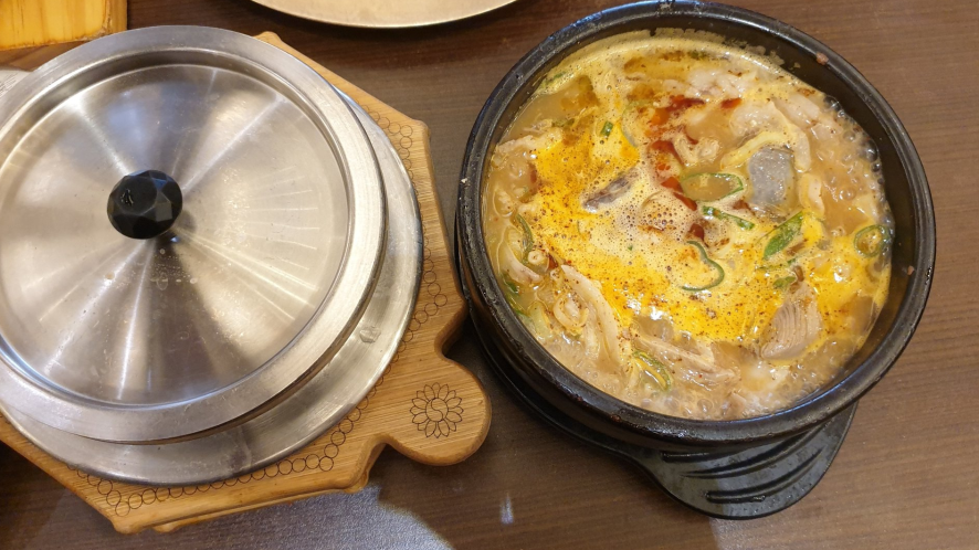 내부 분위기는 아늑하면서도 깔끔하고, 직원들의 친절한 모습도 인상적이다. 미리 추천받은 메뉴인 순대국밥, 편백정식, 오징어숯불구이를 주문해봤는데, 정말 맛있었다. 순대국밥은 돼지냄새가 조금 나지만 들깨가루와 부추, 후추 등을 넣으면 상당히 맛있게 먹을 수 있었다. 편백찜은 특유의 향은 나지 않지만, 순대와 수육, 숙주까지 모두 맛있어서 추천한다. 그리고 오징어숯불구이는 부드러우면서도 쫄깃하며, 양념이 조금 달지만 매우 맛있어서 밥과 함께 먹기 좋았다. 반찬도 맛있는데, 어리굴젓은 한 번 더 시키고 싶을 정도로 입맛에 맞았다.