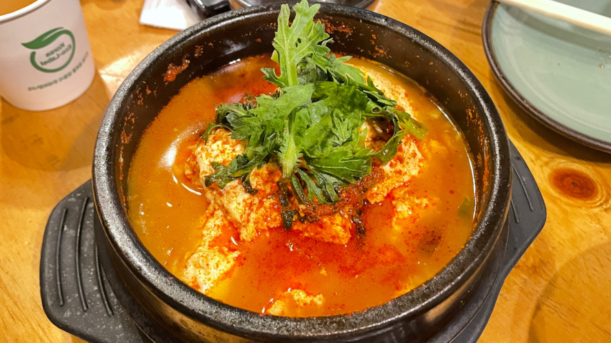 이외에도, 백순두부와 해산물순두부찌개도 함께 시켰는데, 백순두부는 따끈할 때 다른 양념 없이도 고소하고 포실포실한 맛이 인상적이었습니다. 해산물순두부찌개는 홍합, 새우, 게, 조개 등이 들어있어서 해물의 신선한 맛과 순두부의 부드러운 식감이 어우러져 정말 맛있게 먹었습니다.
