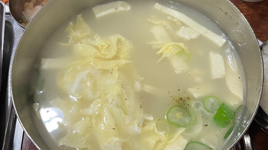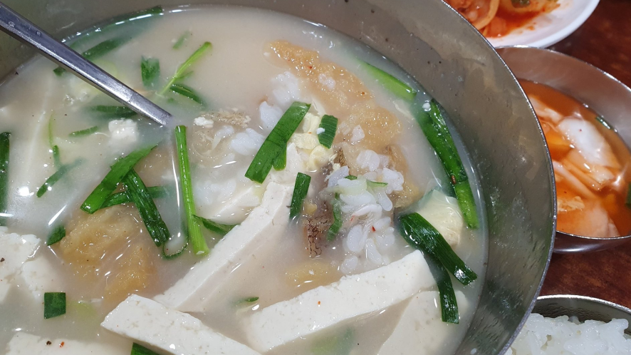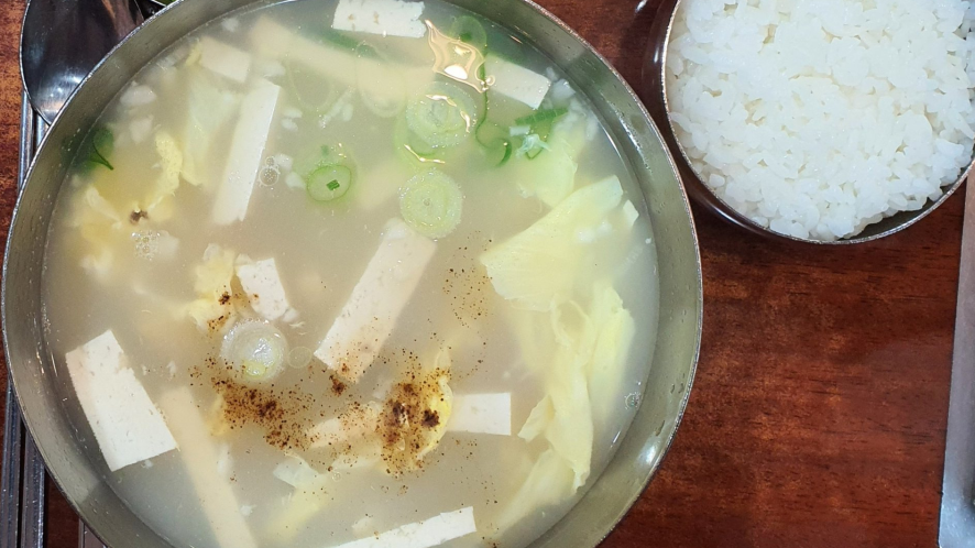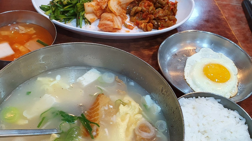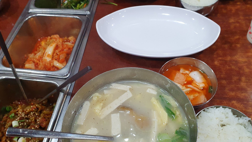 이곳에서의 아침 한끼는 정말 활기찬 하루를 시작하기 위한 보급소와 같습니다. 이 식당에서는 밥, 국물, 건더기(북어, 두부)를 보충해 주는데, 그 양이 적지 않습니다. 마치 한그릇 더먹는 양이라고 할 수 있겠습니다. 그래서 난 국물만 추가해서 더 맛있게 즐깁니다.