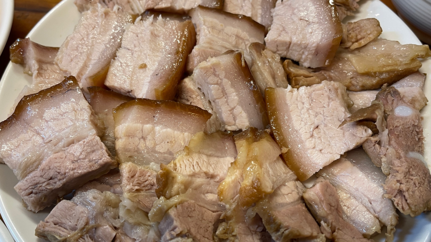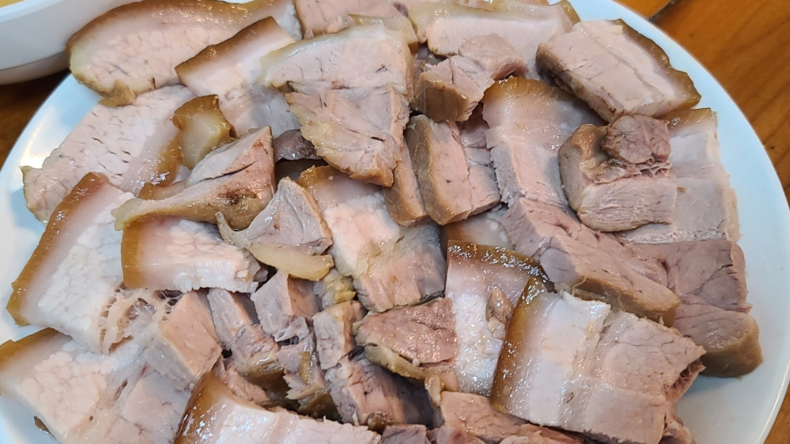 고기는 국내산 생오겹살을 사용하며, 껍질과 비계층이 쫀득한 느낌을 주는 지방맛이 잘 어우러져 맛있는 돼지맛을 느낄 수 있습니다. 보쌈용 양념까지 맛있는데, 갓 만든 보쌈김치 한 덩이가 제공되어 매우 만족스러웠습니다.